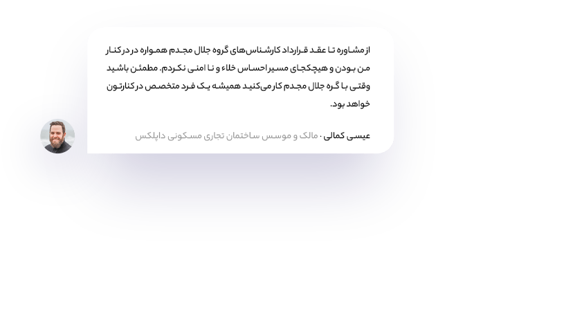 گروه جلال مجدم در تمام پروسه از مشاوره و طراحی تا نظارت در اجرا در کنار شما خواهد بود